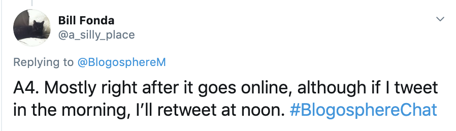 Thanks to everyone who contributed to this week’s #BlogosphereChat! Please join us again next Sunday at 8pm!