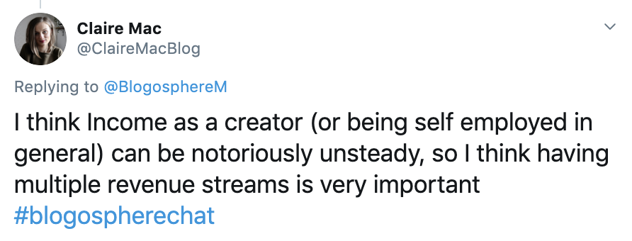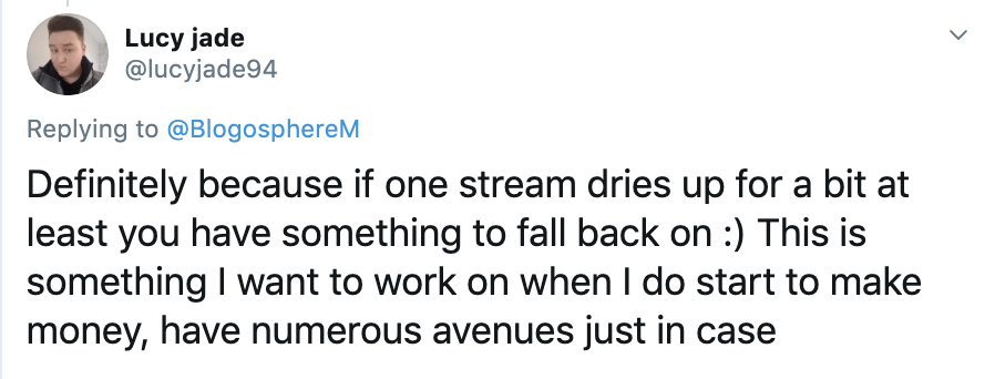 There was a pretty unanimous ‘yes’ in response to this question, with bloggers understanding that the industry can be quite unstable, and so multiple revenue streams allows there to be something to fall back on if other streams slow down.