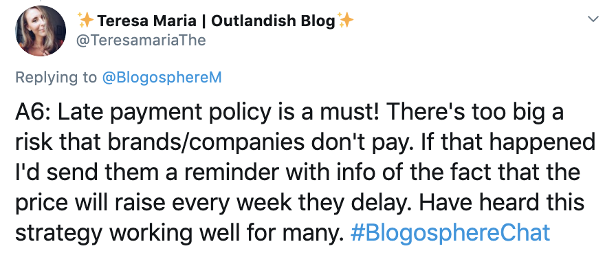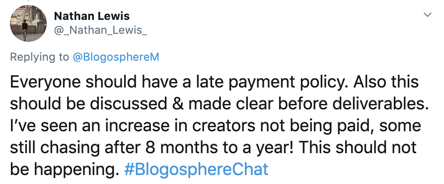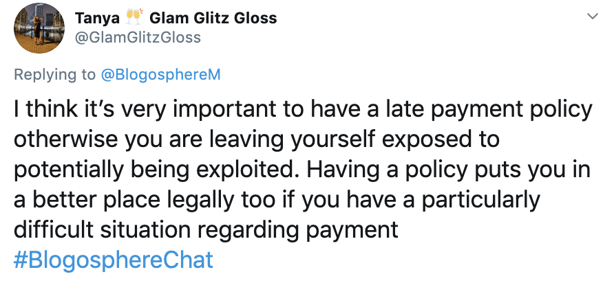 Many bloggers emphasised that a late payment policy was a necessity, and should be laid out to brands before taking on the work in order to protect yourself. Others noted that if they got into this situation then sending follow-up emails would be a good first step.