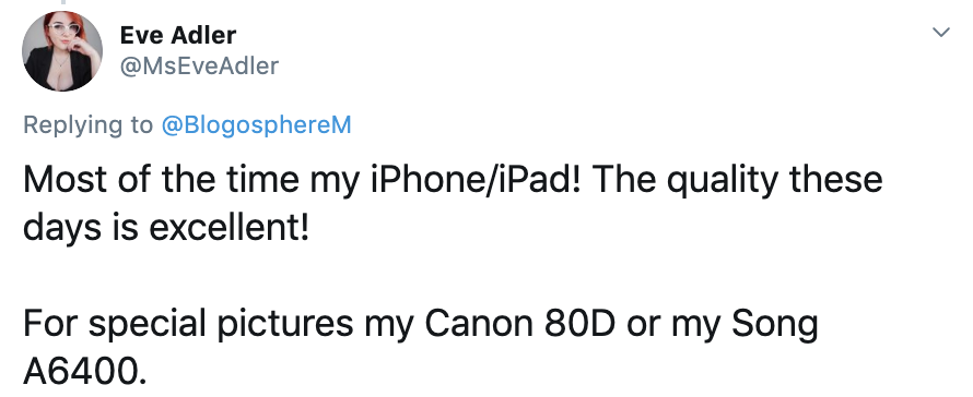 Many bloggers and influencers use multiple devices, depending on what the content is for. For quick, social media updates a smartphone camera is a popular option, whereas a DSLR provides users with more creative control and quality. Using just a smartphone camera for content has become an increasingly viable option for influencers as the quality offered by these devices improves.
