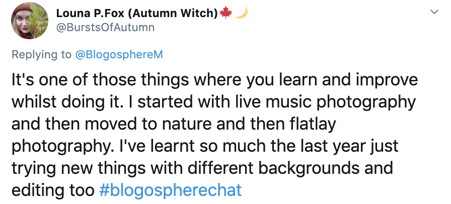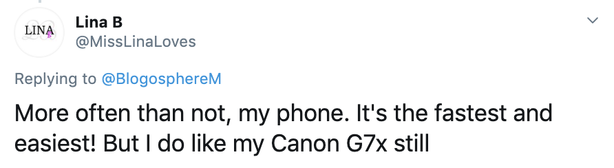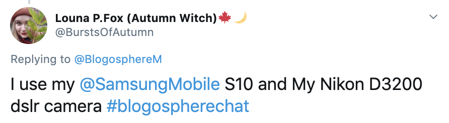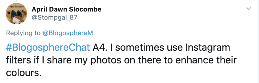 Following on from our launch weekend of the Blogosphere Award nominations, the #BlogosphereChat returned Sunday at 8pm focusing on photography. Over the hour we learned about how our network uses their camera equipment and smartphones for their content creation. Here’s what they had to say…