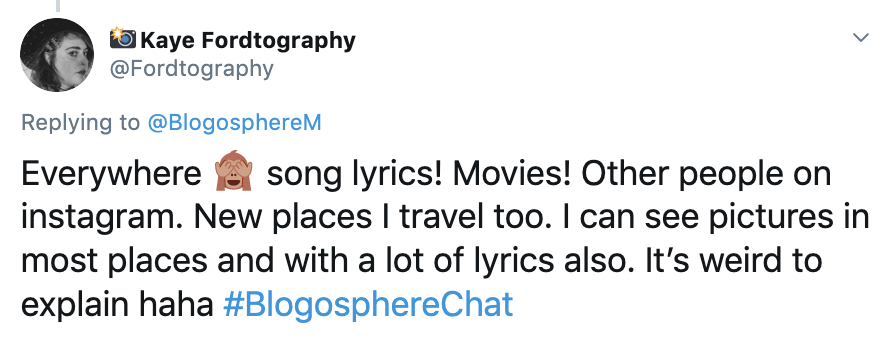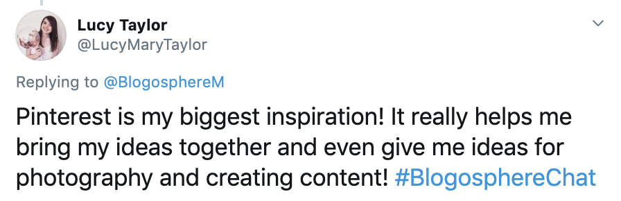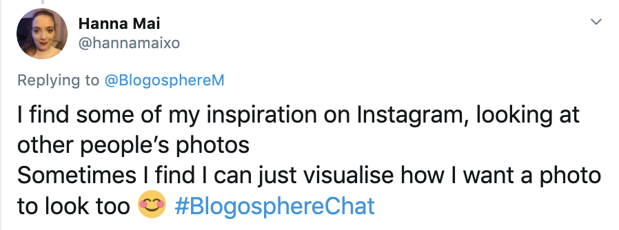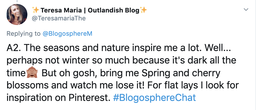 We had a variety of answers for this question, a common theme for bloggers and influencers who contributed to chat was the changing weather seasons, architecture/destinations, and other influencers on social media and in magazines.